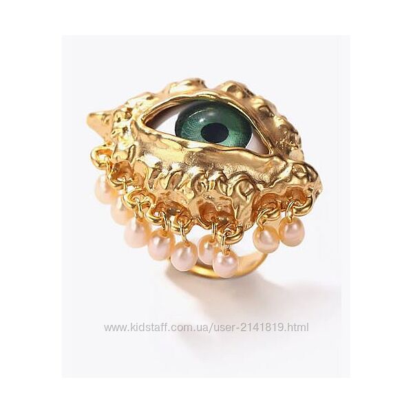 Винтажное кольцо глаз schiaparelli style в золотом цвете, перстень глаз, бе