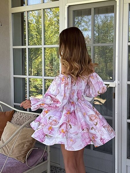 Подробное описание: Жіноча сукня міні з принтом лляна бавовняна з довгим рукавом