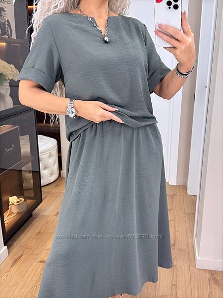 Подробное описание: 42-44, 46-48, 50-52 легкий літній жіночий костюм спідниця міді і блузка