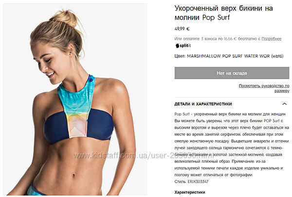 Подробное описание: Спортивный топ roxy surf для спорта пляжа серфа