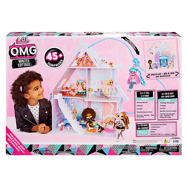 ЗИМОВИЙ КОТЕДЖ - це стильний дерев’яний ігровий будиночок для ваших подружок L.O.L. SURPRISE! Починайте зимові пригоди з улюбленими лялечками!понад 45 сюрпризів при розпакуванні