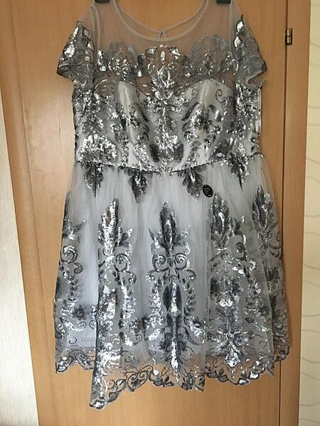 вечірнє випускне плаття Chi Chi London великий розмір 54 всі розшиті паєтками, є атласний і два фатинові півспідниці виміри довжина — 121 см верх-50см по грудях —66 см по талия-60см 7/9