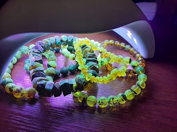 Прикраси з бурштину володіють магічною красою і привабливістю, перед якою неможливо встояти. Яскраві, розкішні, ефектні вони заворожують, займають особливе місце в колекції. Представлений браслет – прояв вишуканого мінімалізму, досконалості. Виготовлений він з об’ємних напыв прозорих намистин лаймового відтінку. В глибині натурального каменю – оригінальна текстура, котра надає виробу ще більшої загадковості. На витонченому зап’ясті виглядає він чарівно, грає відблисками на світлі, обдаровуючи теплом і райдужним настроєм. Аксесуар гармоніює з діловими костюмами, доповнить елегантне урочисте вбрання або повсякденний одяг.