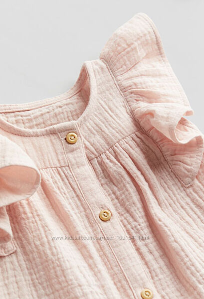 Комплект трійка від H&M сорочка з рюшами на короткий рукав , штанішки на резинці -мають утяжку з м´якого тонкого трикотажу і пов"язкаКолір -рожевий в квітковий принт