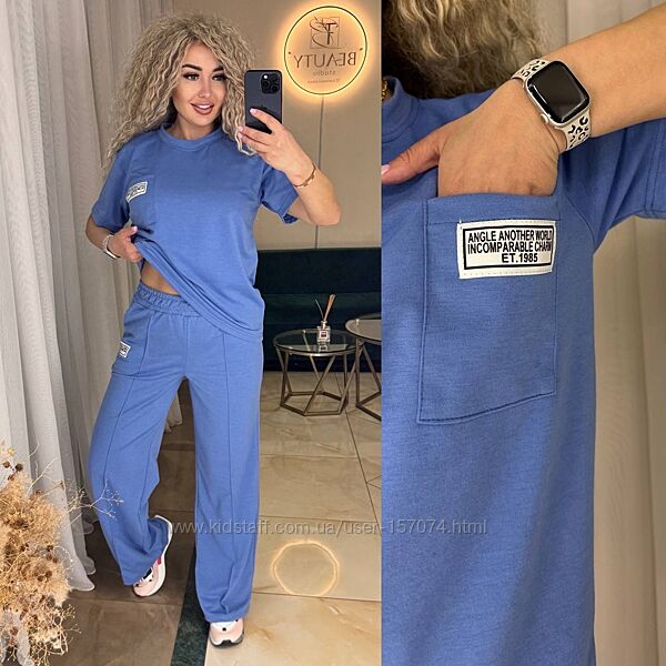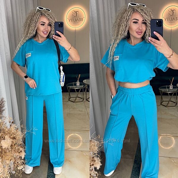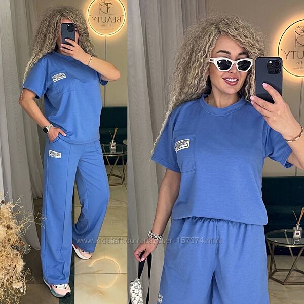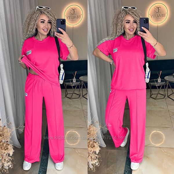 Подробное описание: Костюм футболка с широкими штанами двунитка 42-52 р-р
