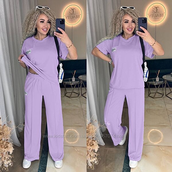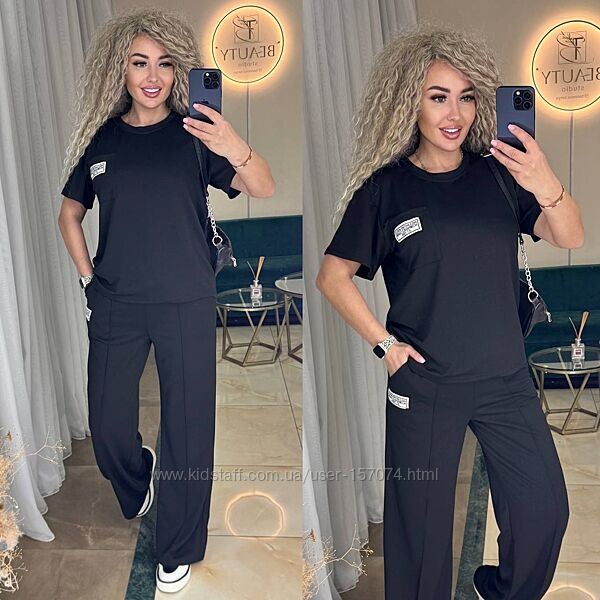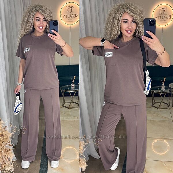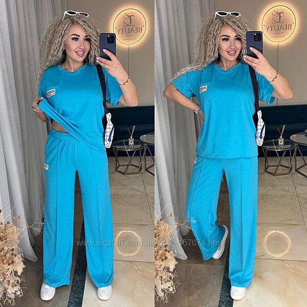 Костюм футболка с широкими штанами двунитка 42-52 р-р