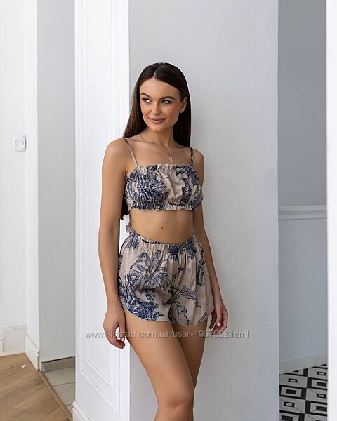 Подробное описание: Жіночий костюм шовковий з шортами з топом літній