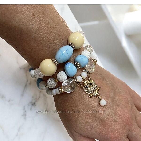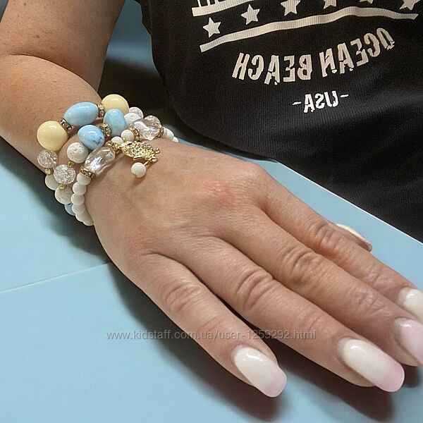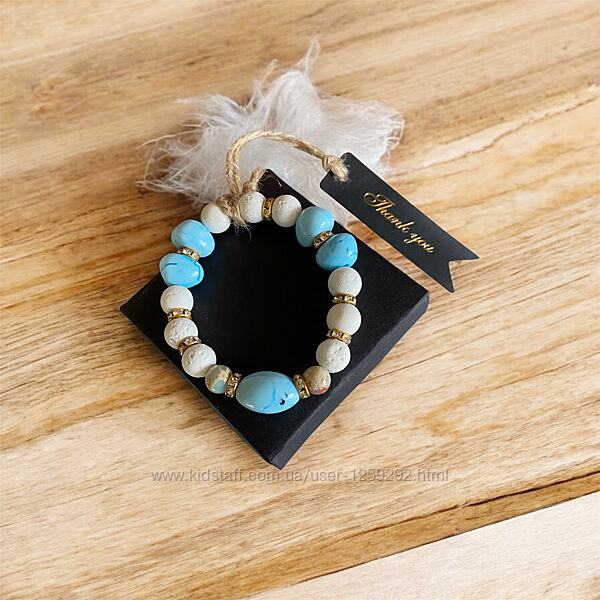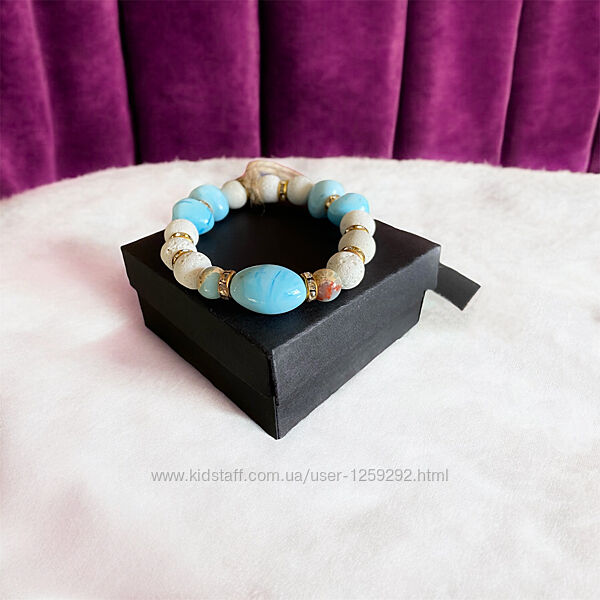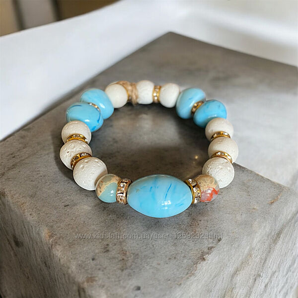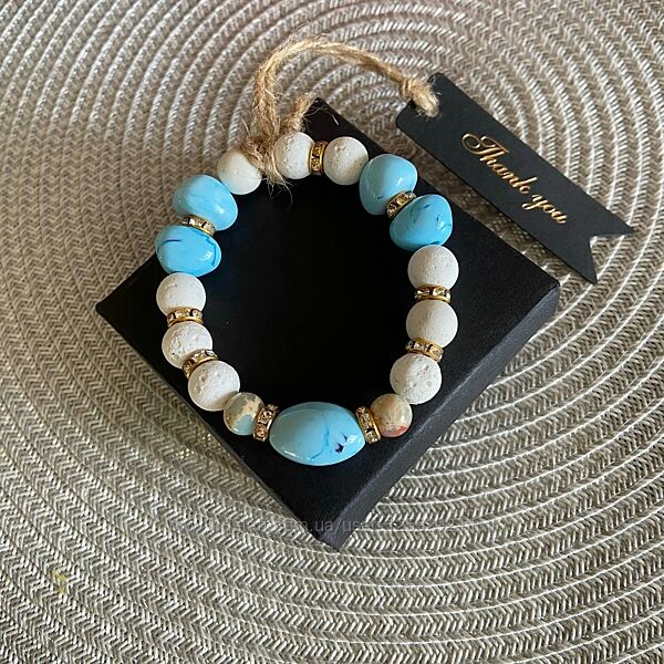 Это неимоверное украшение создает легкий вайб морского побережья,ограненного скалами!🌊🏔️С вулканической лавой,яшмой и голубыми акриловыми бусинами в форме морских камней.
