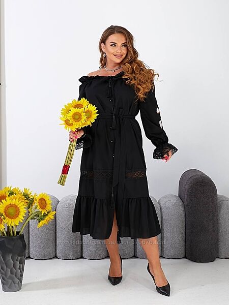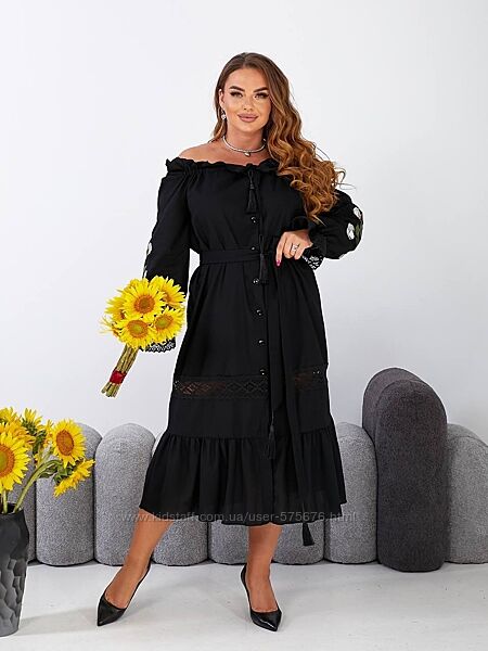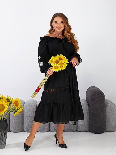 48-50,52-54,56-58 Сукня вишиванка льон, бавовняне мереживо