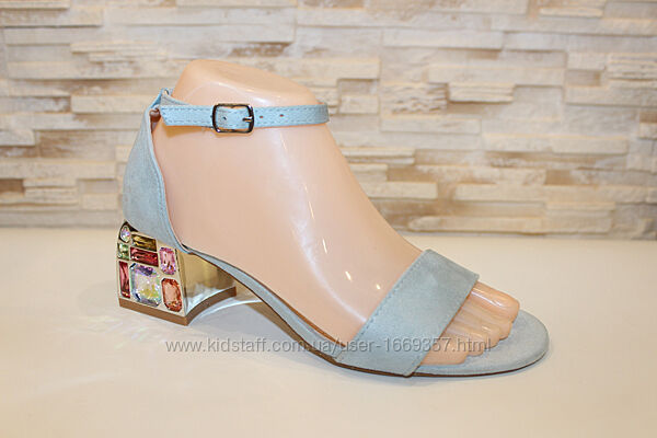 Подробное описание: Босоножки женские голубые замшевые каблук Б1665 Уценка читайте описание