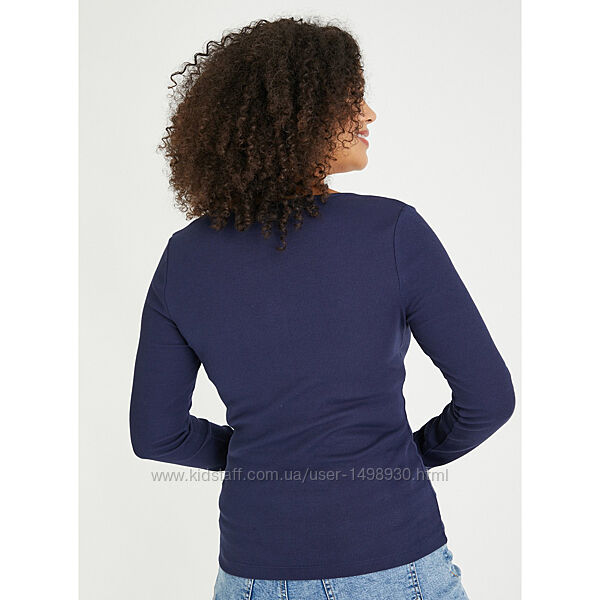 Базовий бавовняний лонгслів по фігурі в рубчик р.16