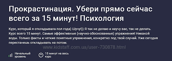 Дарья Шарова Прокрастинация. Убери прямо сейчас всего за 15 минут! (2025)Курс, который я откладывала пол года) Шучу!)) Я так не делаю и научу вас, так не делать. Курс всего 15 минут.