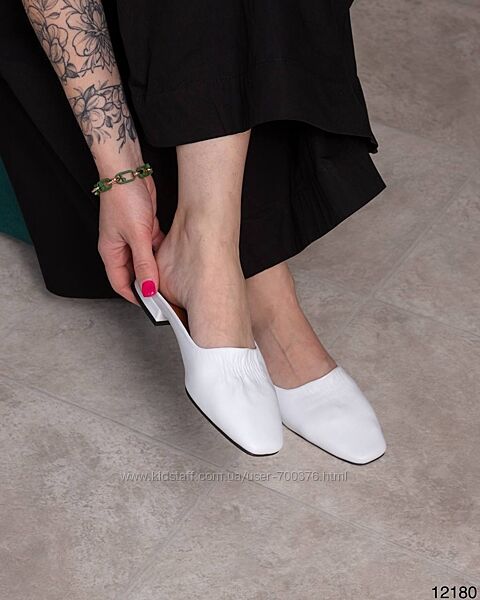 Сабо, натуральна шкіра, білі. Всередині мʼяка шкіряна устілка. Висота каблука 1.5 см. Розмір в розмір. Розмірний ряд: 36-40. Виробник Туреччина.