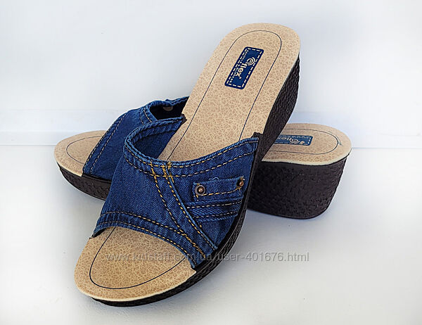 6886Шлепанцы женские джинсовые на танкетке TM Flex. Материал верха - прочный, двухслойный, дышащий джинсовый текстиль. Стелька - иск.кожа с матированной поверхностью против скольжения.