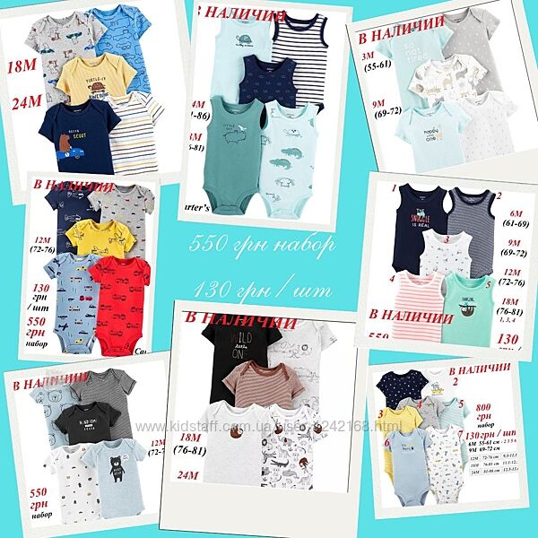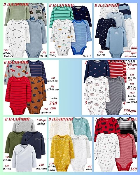 Распродажа бодиков Картерс!Поштучно 130 грн/бодик короткий рукав, 160 грн/бодик длинный рукав.