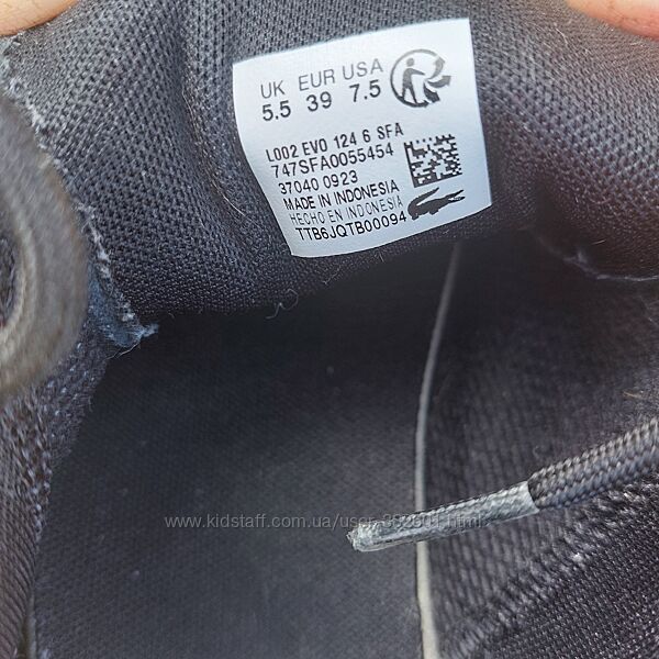 Lacoste кросівки жіночі, вживані.Матеріал: верх - 83% шкіра, 17% замша; підкладка - 72% перероблений поліестер, 28% нейлон; устілка - 70% перероблений поліестер, 30% поліестер; підошва - 90% гума, 5% EVA, 5% термопластичний поліуретан% шкіра, 30% замша, 15% штучна шкіра, підошва - гумаЗамшеві акценти на п´ятці та носку