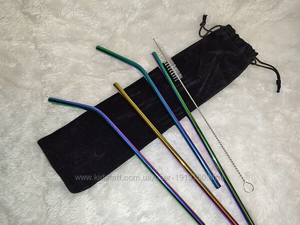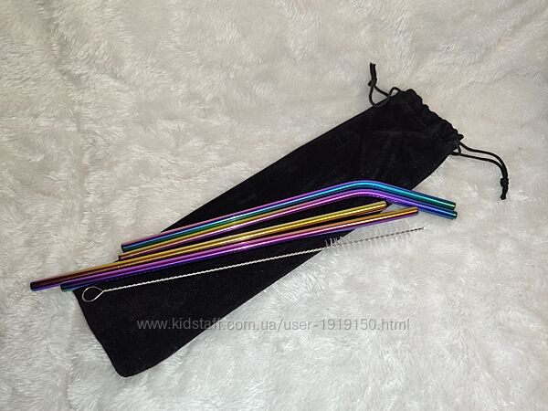 Яскраві нержавіючі багаторазові трубочки для напоїв. Комплект 4 трубочки , щіточка, чохол для зберігання. Нові.1 набор - 65 грн