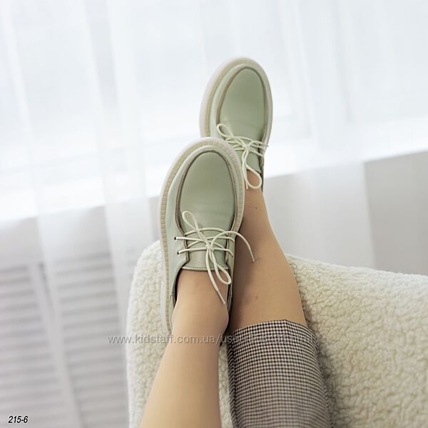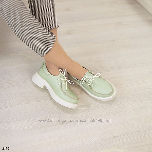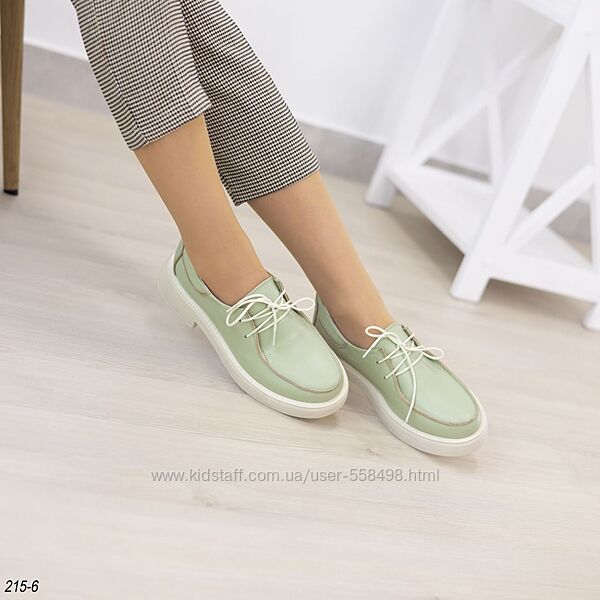 Туфлі з натуральної шкіри світло-зеленого кольору