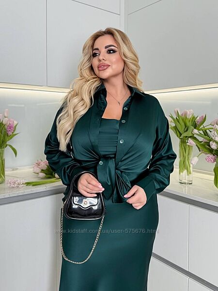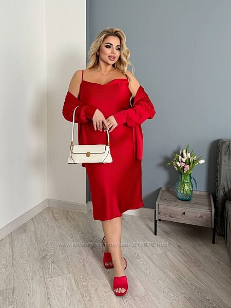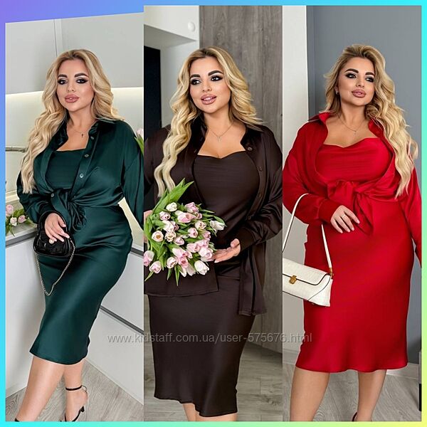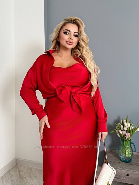 Подробное описание: 46-48,50-52,54-56 костюм сорочка та сукня міді на бретельках атлас