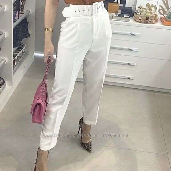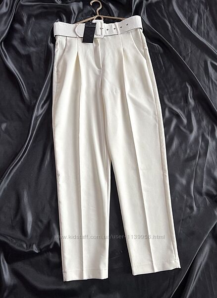 Штани зі стрілками з високою посадкою Perry Нові з бірками Колір молочний, не білосніжні Цікава структура тканини Розмір Л, орієнтуйтесь на заміри Бокова довжина 102 Внутрішня довжина 69 Ширина низу 17 Ширина штанини зверху 29 Посадка 34 Пояс 39, можна за потреби зменшити ременем Бедра 48-52 990 гр