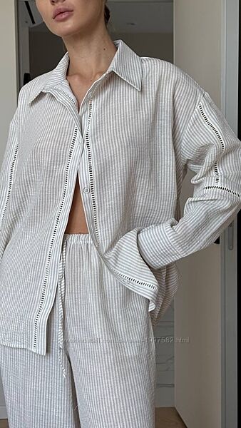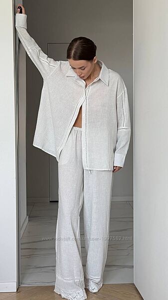 Подробное описание: Домашній костюм-трійка Bianca сорочка штани шорти