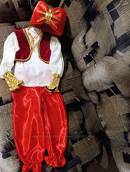 Продажа карнавальных костюмов,пошив под заказ.У нас в ассортименте есть всевозможные персонажи из сказочных героев, животных и птиц и много других необычных персонажей.АЛЛАДИН - 750 грн (рубашка, жилет, штаны, тюрбан)