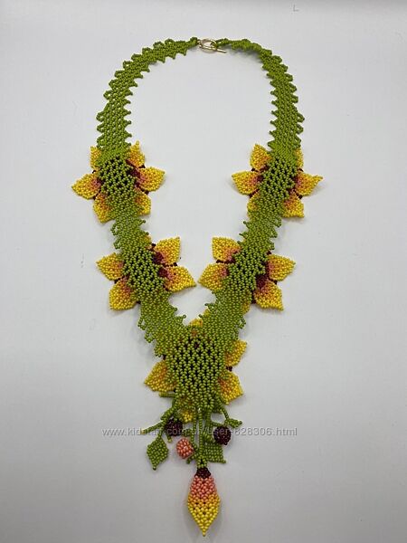 Гердан з бісеру ручної роботи у стилі уічоль (для виробу використаний бісер Preciosa (Чехия) та бісерна нитка). Загальна довжина 40 см, вага 94 гр. Застібка: нержавіюча сталь з покриттям золотом 18К. Є внаяності. Можливий накладний платіж, але за умови передплати вартості доставки. Повернення немає.Самовивіз з м.Ірпінь або перешлю за домовленістю