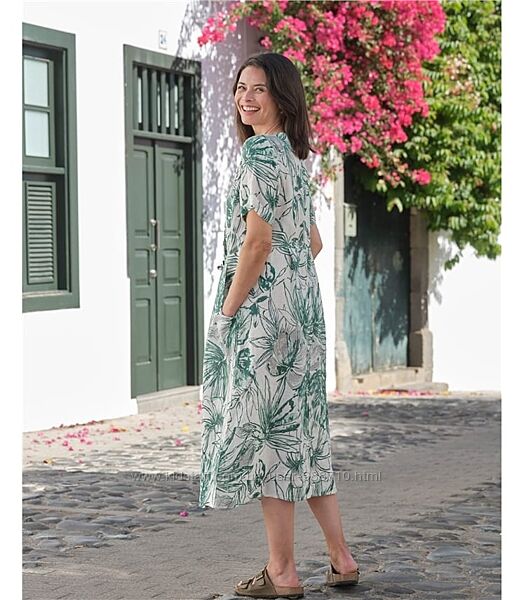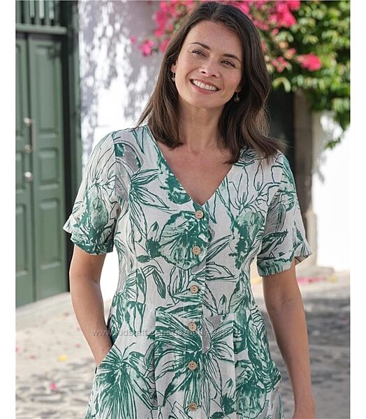 Комфортное платье с принтом миды оверсайз Woodovers 100%лён10-12,ML