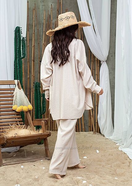 Подробное описание: 42-44, 46-48 Жіночий літній костюм сорочка та штани із бавовни