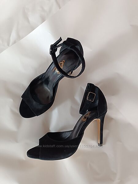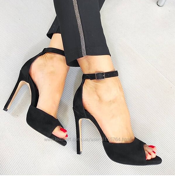 Неймовірно вишукані -босоніжки. Верх натуральна замша (велюр)всередині натуральна шкіра, чорний колір, під замовлення можуть бути інші кольори Підбори 9.5см, підійдуть моделі на середньої повноти стопи.Ціни від 2250грн
