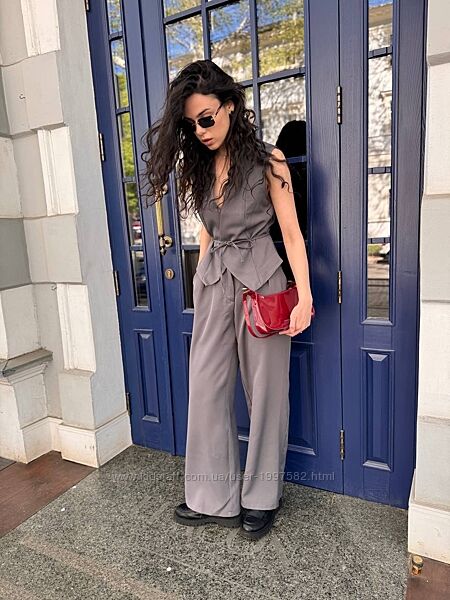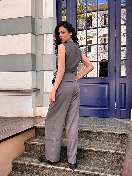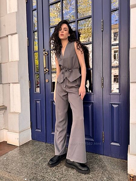 Штани палаццо які візуально подовжують ніжки та жилет з пояском ,який ідеально підкреслює талію та створює силует пісочний годинник