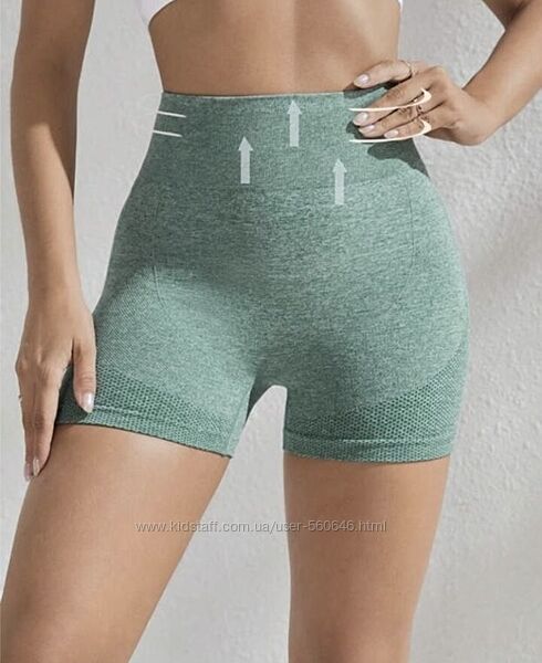 Відмінна якість! Комфортні еластичні безшовні шортики для спорту. Зональна модель с візуальним ефектом пуш-ап. Добре підкреслюють і формують фігуру. Позаду коригуючий шов. Широкий пояс, зручна посадка. Тканина приємна до тіла, середньої щільності . Не просвічуються. Склад: 90% поліамід, 10% еластан. Вказано розмір М, дивіться виміри в спокійному стані: напівОТ 31, напівОБ 36, напівобхват штанини внизу 20,посадка близько 26,довжина 33, ширина поясу 8 см. Добре тягнуться. Колір красивий зелений. Дефектів немає.