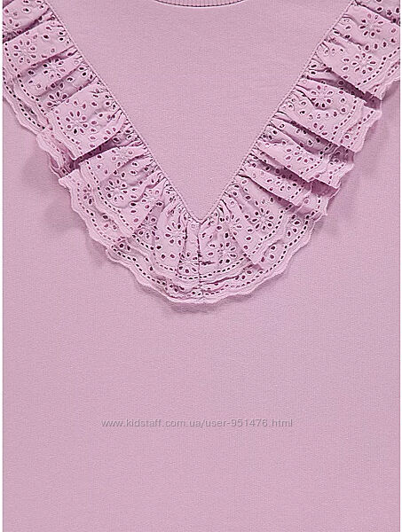 - Опущені плечики, світшот оздоблений ажурними рюшами.