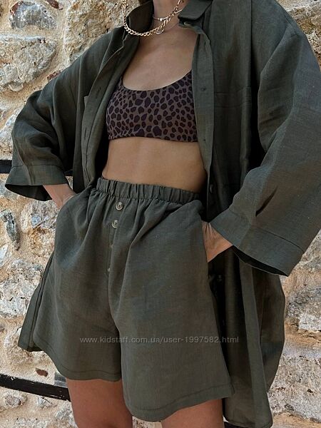 Подробное описание: Жіночий костюм лляний літній з шортами з сорочкой