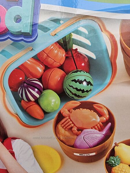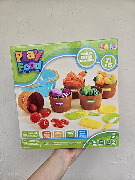 Перед вами захопливий набір іграшок з 69 предметів. Він включає яскраві шматочки іграшкової їжі. Тут є овочі, м´ясо, морепродукти. Все це акуратно розкладено у п´яти кошиках. Гра з таким набором подарує маленьким фантазерам море насолоди.Пропонований набір сприяє розпізнаванню кольорів та вчить сортування за допомогою кошиків та ярликів з різним колірним кодуванням (фіолетовий, зелений, жовтий, червоний, помаранчевий). Ці іграшкові продукти перетворюють навчання на веселе заняття.Пориньте у світ класифікації продуктів харчування з трьома різними типами іграшкової їжі: м´ясом, овочами та фруктами. Кожен з них забезпечений спеціальними бирками з назвами, що сприяють ідентифікації та розумінню різних типів продуктів харчування. Цей захопливий ігровий елемент збагачує взаємодію та навчання під час гри.Цей ігровий набір включає місткий кошик для зберігання, що спрощує прибирання та організацію. Це гарантує, що після захопливої гри всі елементи набору знайдуть свій «будинок».Родзинка ігрового комплекту – функція нарізки їжі. У наборі є столові прилади та обробна дошка, завдяки чому малюк відчує себе справжнім шеф-кухарем. Ця сенсорна іграшка пропонує різноманітні можливості навчання та незліченні години веселощів – і все це в одній упаковці!Всі елементи набору виготовлені з високоякісних нетоксичних матеріалів.Переваги:Навички розпізнавання кольорів.