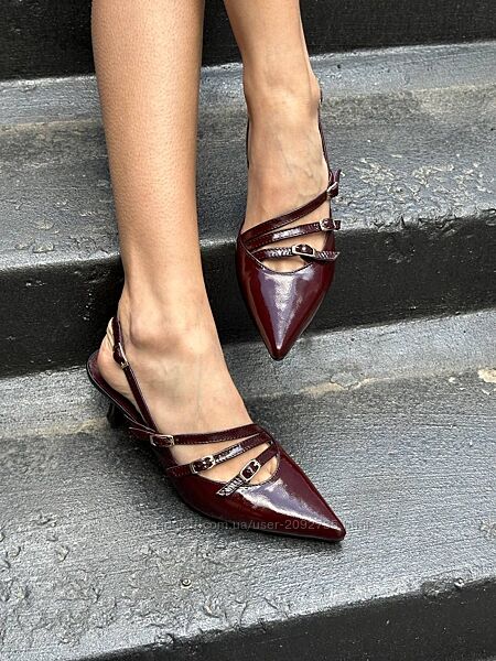 Слінгбеки жіночі натуральна лакована шкіра Артикул 5510 новинка