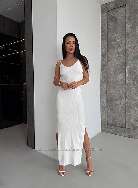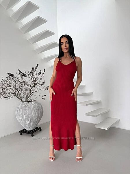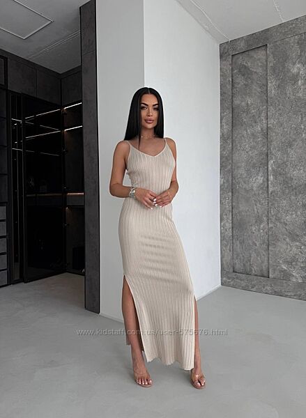 Сукня максі прямого крою на тонких бретелях. Приталений крій з розрізом збоку створює привабливий силует.• Розмір універсальний 42-46