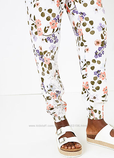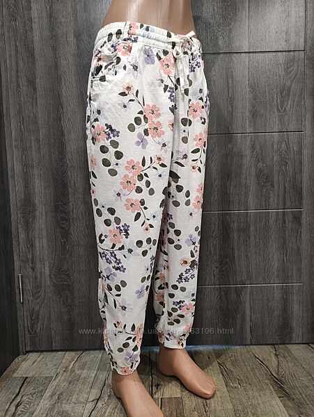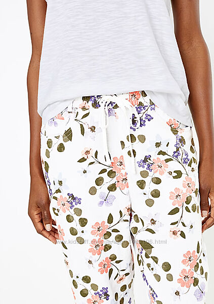 M&S Collection Linen Rich Floral Print Peg TrousersЭти брюки от Marks&Spencer, украшенные разноцветным цветочным принтом, помогут Вам стильно провести теплое время года. Штанины внизу на резинках, есть боковые и задние карманы. Эластичный пояс со шнурком для комфорта. Штаны изготовлены из прохладного и дышащего материала с добавлением льна. Легко гладить.