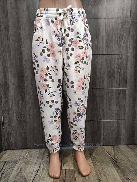 Классные льняные штаны джогеры лен и вискоза пояс 42-53 см