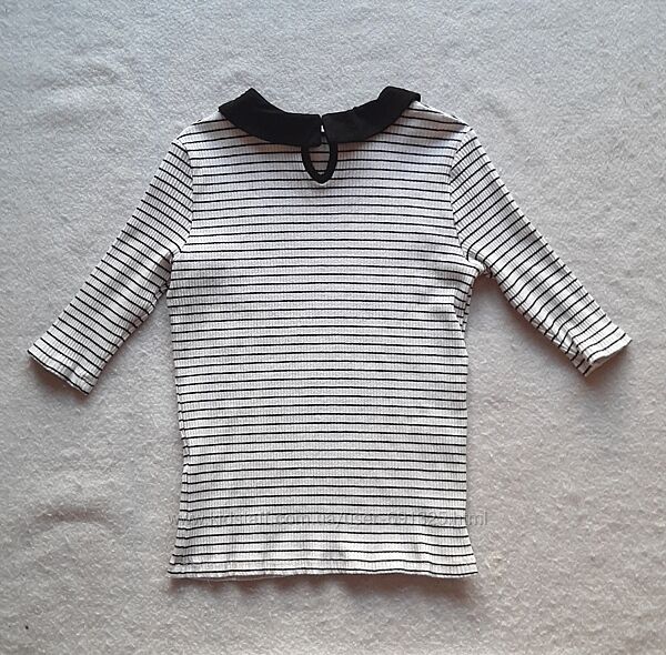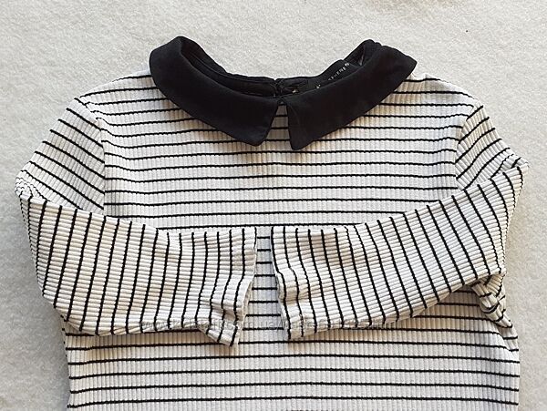 Пропоную чорно-білу блузку з воротом. Матеріал в´язане полотно, 85% віскоза, 11% поліестр, 4% еластан, добре тягнеться. Уживана мало, акуратно, стан відмінний, дефектів немає, дивіться фото.Розмір вказано на 8/36/4/40. Довжина 47 см, плечей 30-40 см, довжина рукава 25 см, ширина грудей під пахвами 32 см, тягнеться до 46 см.