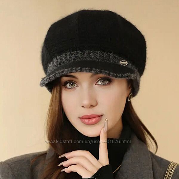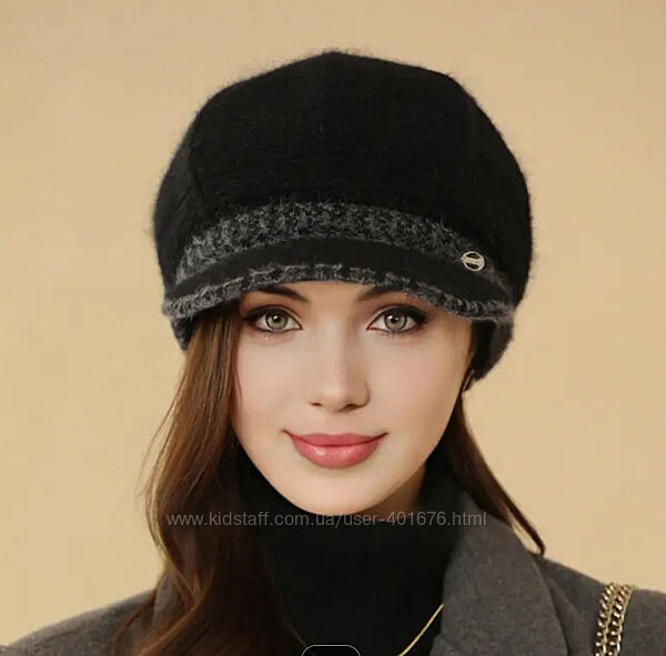 3446Женский вязаный берет, плотная вязка (пушистая пряжа) + подкладка на флисе, с козырьком, хорошо растягивается и идеально садится на голове. Идеально подходит для среднего и старшего возраста