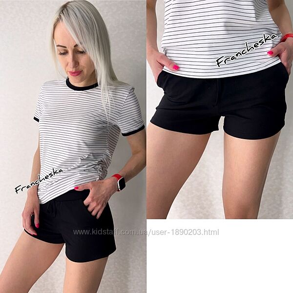 Подробное описание: Жіночий костюм шорти та футболка у смужку ROKSANA арт.1641