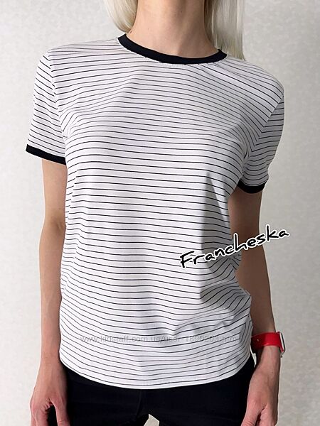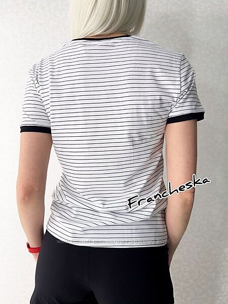Комплект жіночий шорти та футболка у смужку з колекції "STRIP LIFE" (арт.1641) від українського виробника Roksana можна купити в нашому інтернет магазині "Francheska".Жіночий літній комплект для дому, сну та відпочинку Roksana виготовлений з якісної бавовняної тканини. Складається з однотонних чорних шортиків і футболки білого кольору в тонку чорну смужку. Футболка приталенного крою з круглим вирізом горловини, виріз та рукави виробу прикрашені кантом чорного кольору. Шорти середньої довжини з м´якою гумкою в поясі та зручними бічними кишенями, регулюються по ширині за допомогою внутрішнього шнурка. Жіноча піжама красива та комфортна, ідеальна для сну та домашнього відпочинку, а також може бути корисним подарунком коханій та близькій людині.
