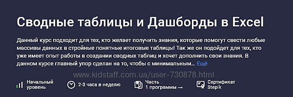 Лариса Зубенкова [Stepik] Сводные таблицы и Дашборды в Excel (2025)Данный курс подходит для тех, кто желает получить знания, которые помогут свести любые массивы данных в стройные понятные итоговые таблицы!