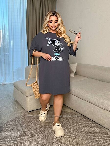 Подробное описание: 46-50, 50-54, 54-58 сукня-футболка оверсайз