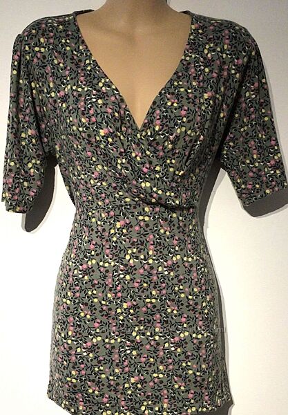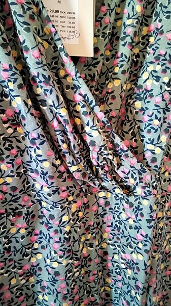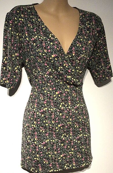 Нова літня віскозна футболка від Mamalicious. Кольору хакі з квітковим принтом з коротким рукавом. На грудях -на запах. Футболка нова. 95%віскоза. Розмір M. Орієнтуйтесь по замірахН/о груди-43