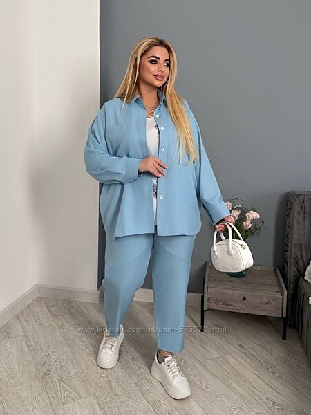 р.50 до 60р. Стильний костюм трійка брюки мом, сорочка оверсайз, блуза