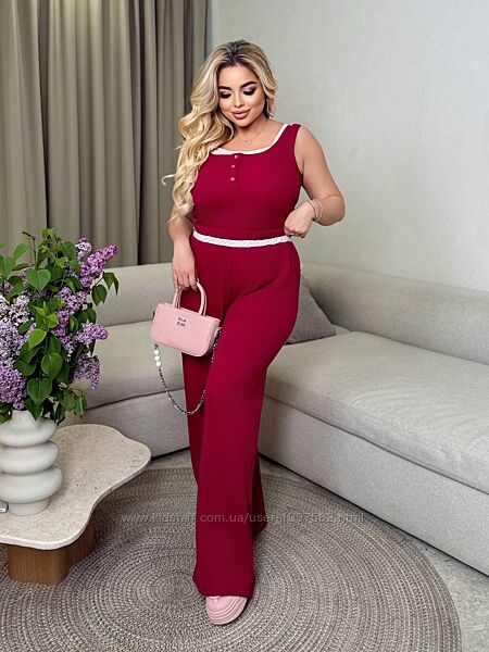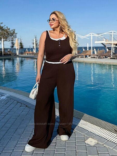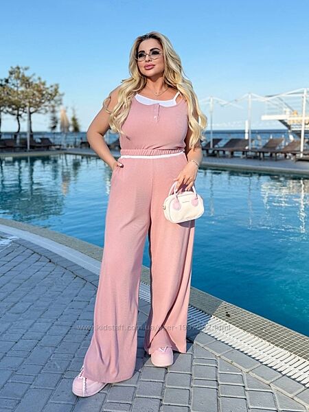 Інші брючні костюми нашого магазину Ви можете переглянути за цим посиланням: https://www.kidstaff.com.ua/user-anno-1997582/sect...Жіночий костюм-двійка в рубчик брюки-палаццо на резинці майка з ґудзиками #2173