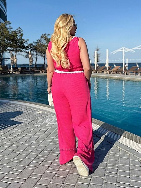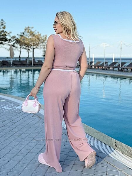 Подробное описание: Жіночий костюм-двійка в рубчик брюки-палаццо на резинці майка з ґудзиками