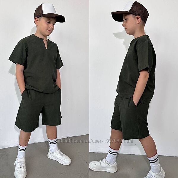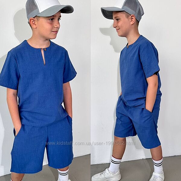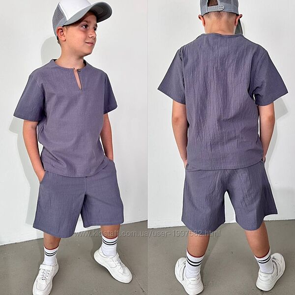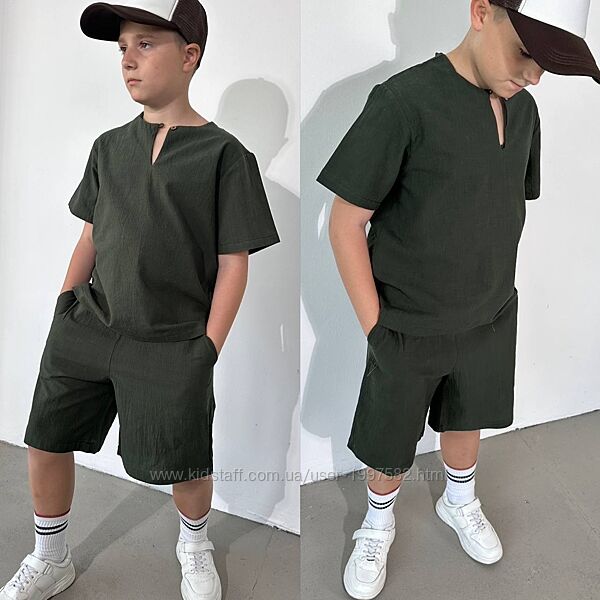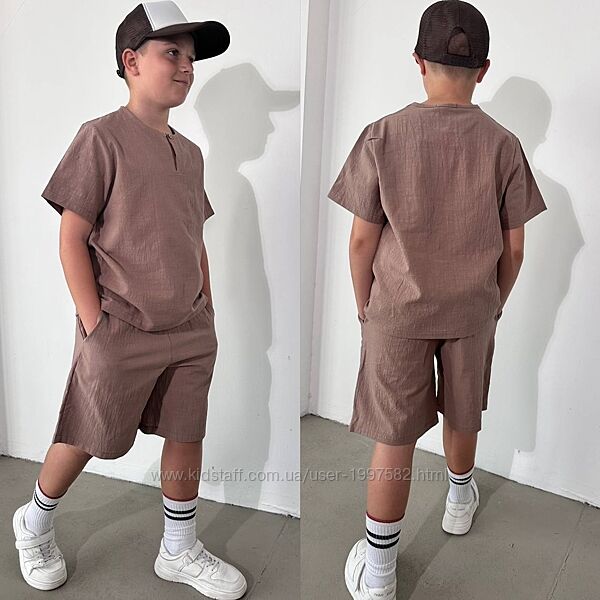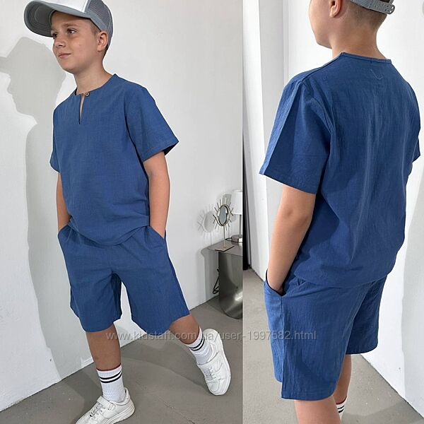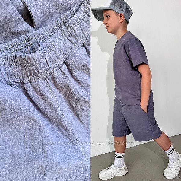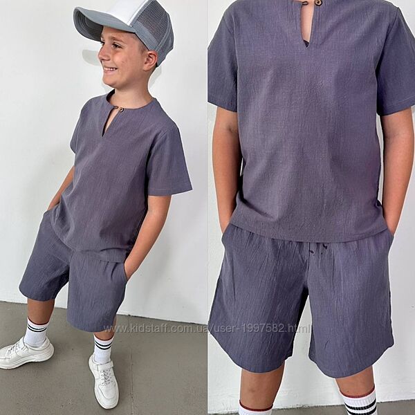 Подробное описание: Підлітковий літній костюм лляний для хлопчика дитячий легкий з шортами
